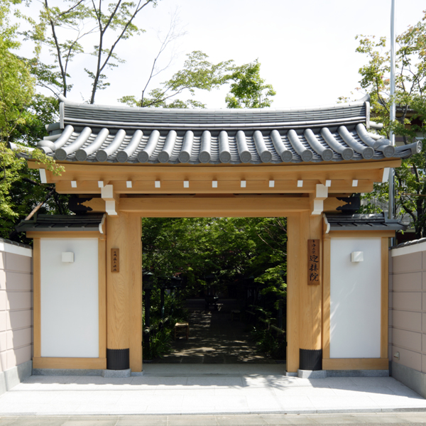 山門は空門、無相門、無作門の三解脱門のことで、本来は三門と書きます。この三つの門を通ってやがて彼岸に至る、仏門の最初の入り口です。平成二十一年(2009年)、迎接院開山三百五十年記念事業として、奈良県吉野の樹齢三百年の檜を使用して落慶されました。