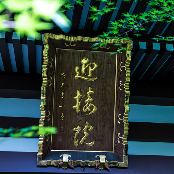 本堂・客殿は平成元年(1989年)に落慶されました。本堂入口の正面に掲げられている「迎接院」の額は、当時の大本山増上寺法主(後に総本山知恩院門主)中村康隆台下による揮毫です。