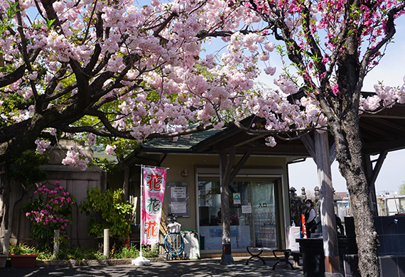 隣接する花屋では、お花やお線香を購入できます。水場も数カ所設けております。